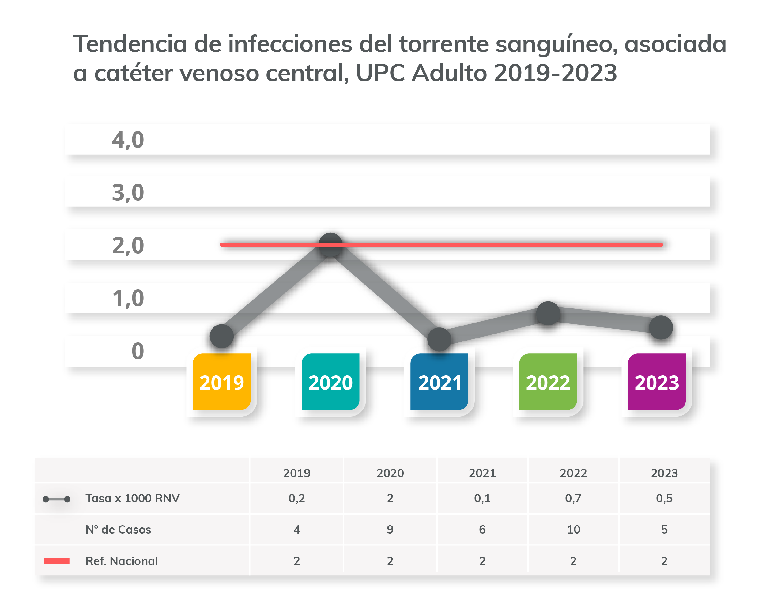 Fórmula: Nº infecciones del torrente sanguíneo (ITS) en pacientes adulto con catéter venoso central (CVC)/ Total de días catéter venoso central (días de exposición al riesgo) x1000.